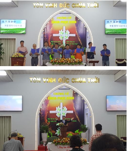 온 세계가 코로나로 많은 것을 경험합니다. 베트남은 코로나 바이러스 확진자 270명 사망자 0명으로 4월 29일 총리가 코로나와 전쟁에서 승리를 발표한 이 후, 5월 8일부터 가라오케와 디스코텍을 제외한 종교활동을 포함한 모든 모임이 가능해져서 지난 주일부터 정상적으로 예배를 드리고 있습니다. 여러분의 기도에 감사를 드립니다.
