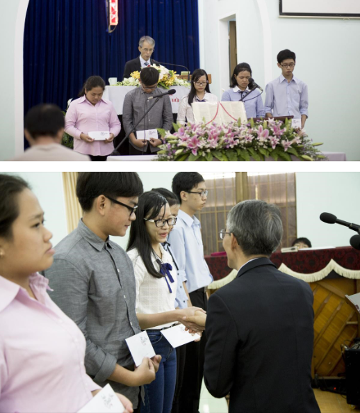 주일(25일)에 장학금을 수여하였습니다. 메콩강 벤쩨에서 온 여자 신학생 Huong, 푹윽화교회 충성스런 집사님의 딸 Đao, 소수종족 여학생 Hpruk, 구찌 떤탄동 교회 목회자 아들 Hieu, 푸윽화교회 목사님 아들 Hoa 이렇게 5명의 학생에게 장학금을 수여하며 축복하는 시간을 가졌습니다. 미래를 위한 작은 시작입니다.하나님 나라와 이 땅의 미래를 위해 기도의 씨앗을 심습니다.