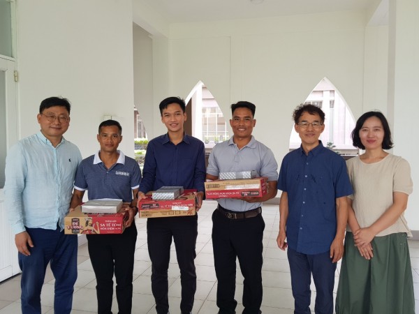 세움 장학사역 : 신학생 그 동안 장학금과 기도로 지원하던 3명의 신학생(8기)이 졸업을 하여 교회 사역을 잘 하고 있고, 올 해는 소수종족인 신학생 H'Long(9기)과 Hao(10기)를 지원하고 있습니다. 이번 2학기를 맞이하여 신학교를 방문하여 장학금을 전달하고 여러가지 이야기를 나누고 기도를 해주고 왔습니다. 정말 좋은 학생들을 만나서 감사하고 좋은 사역자로 준비될 수 있도록 기도주십시오.