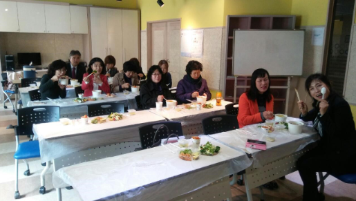 4월 기도회를 앞두고 다함께 모여 점심식사중 입니다.