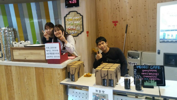 귀한 주의청년들의 사랑의집짓기바자회를 하는 모습입니다.